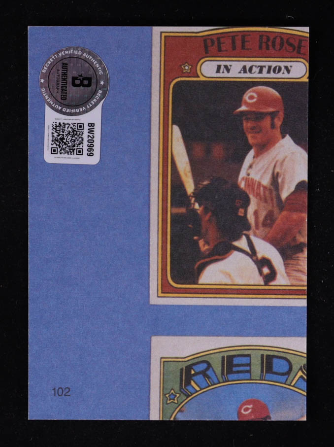Pete Rose Signed 1985 Topps Rose #102 Reds swinging left (Beckett)