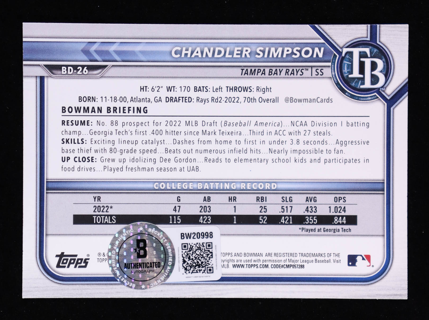 Chandler Simpson Signed 2022 Bowman Draft #BD26 RC (Beckett)