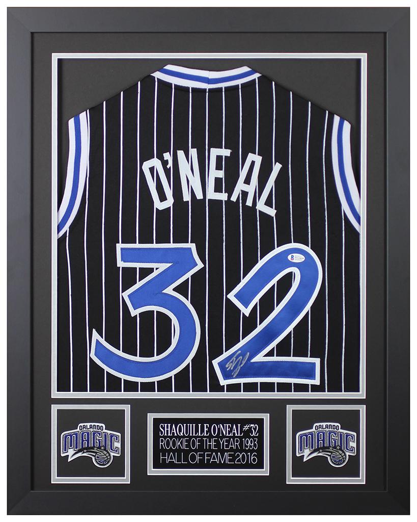 Custom frame measures 24" x 30" in size and features a jersey that has been hand signed by Shaquille O'Neal (HOF).