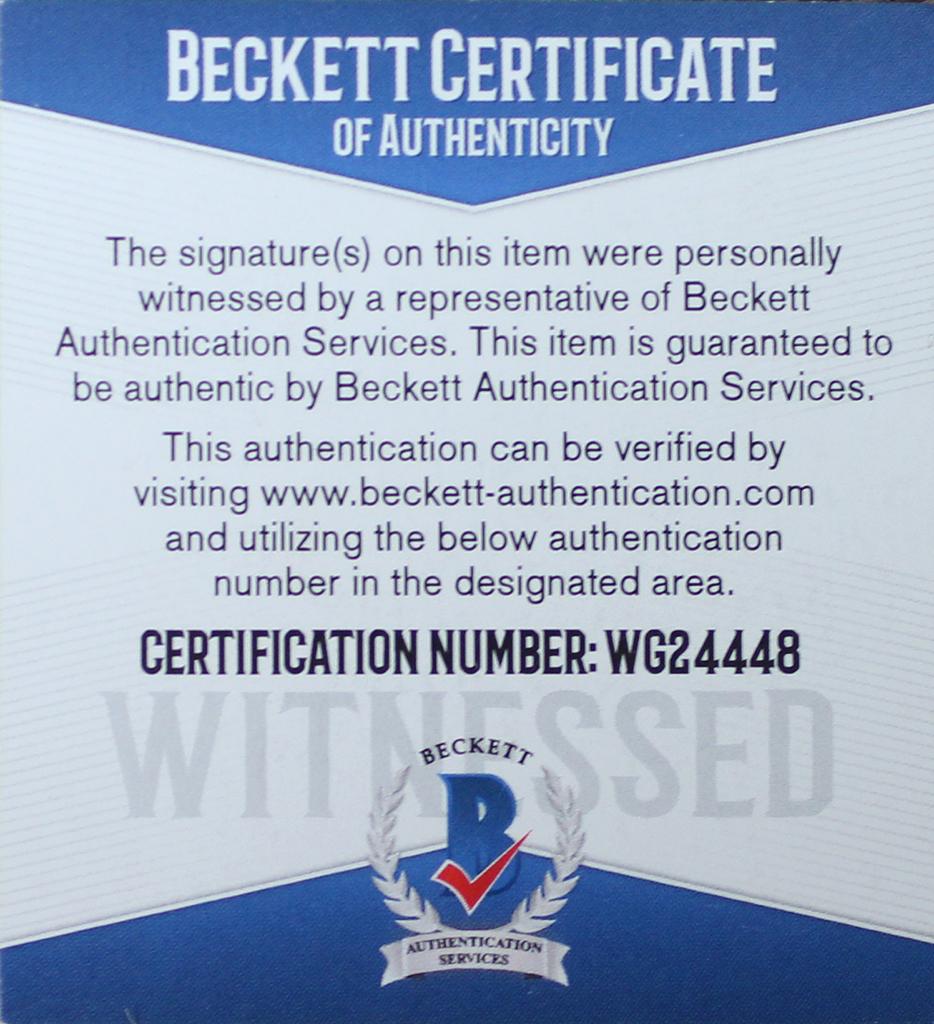 The autograph includes an official Beckett Authentication Services serially numbered hologram for authenticity purposes. The signing of this item was witnessed by Beckett.