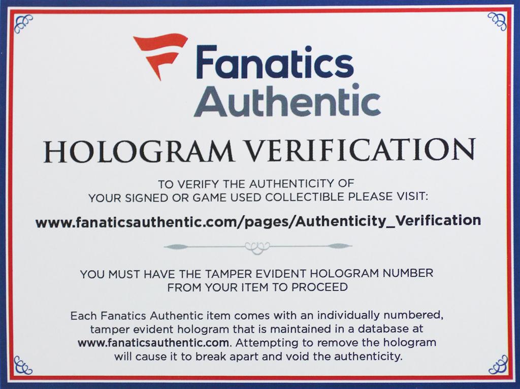 The autograph includes an official Fanatics hologram for authenticity purposes.
