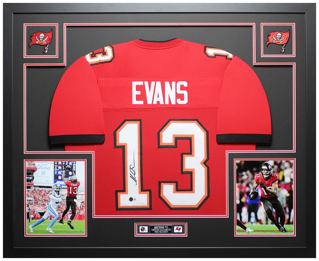Custom frame measures 35" x 43" in size and features a jersey that has been hand-signed by Mike Evans.