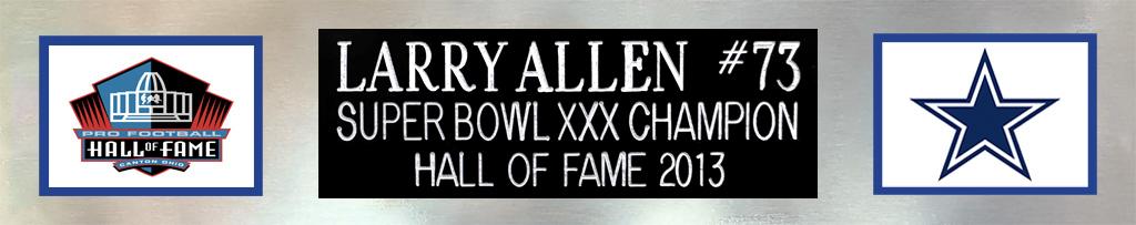 Custom frame measures 35" x 43" in size and features a jersey that has been hand-signed and inscribed by Larry Allen (HOF).