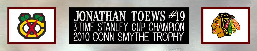 Custom frame measures approximately 35" x 43" in size and features a jersey hand-signed by Jonathan Toews (Chicago Blackhawks).
