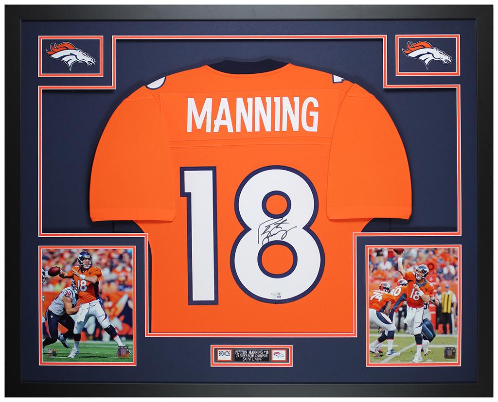 Custom frame measures approximately 35" x 43" in size and features a jersey hand-signed by Peyton Manning (Denver Broncos, HOF).