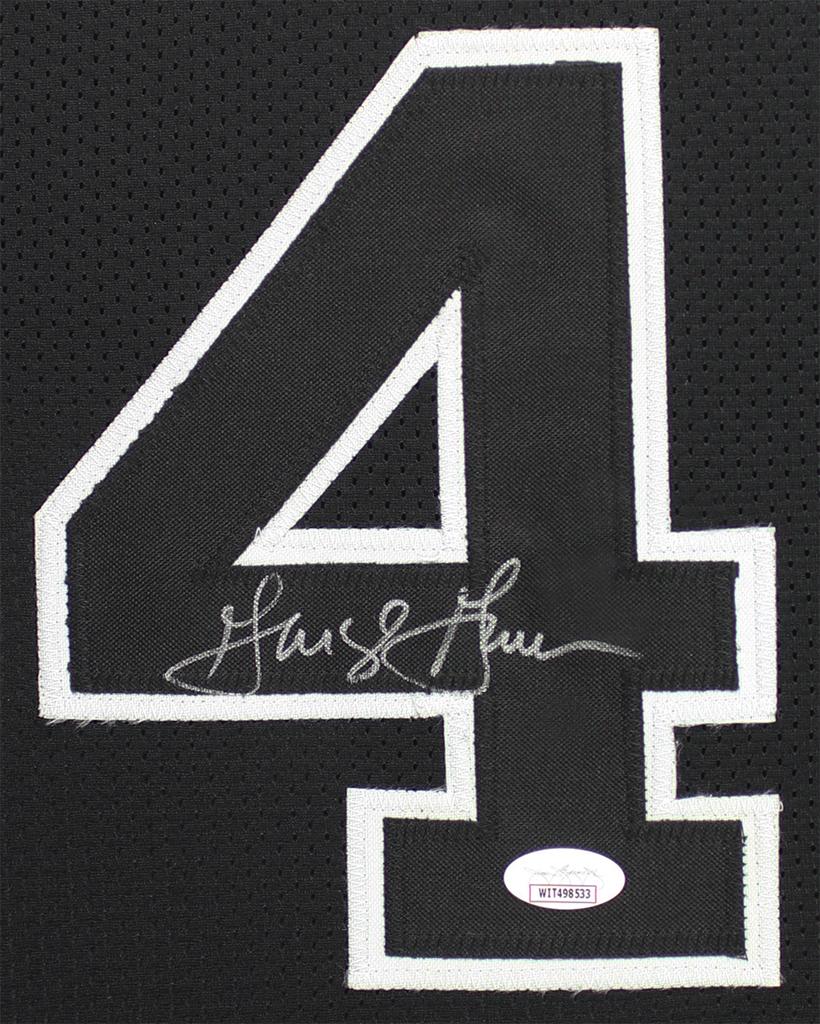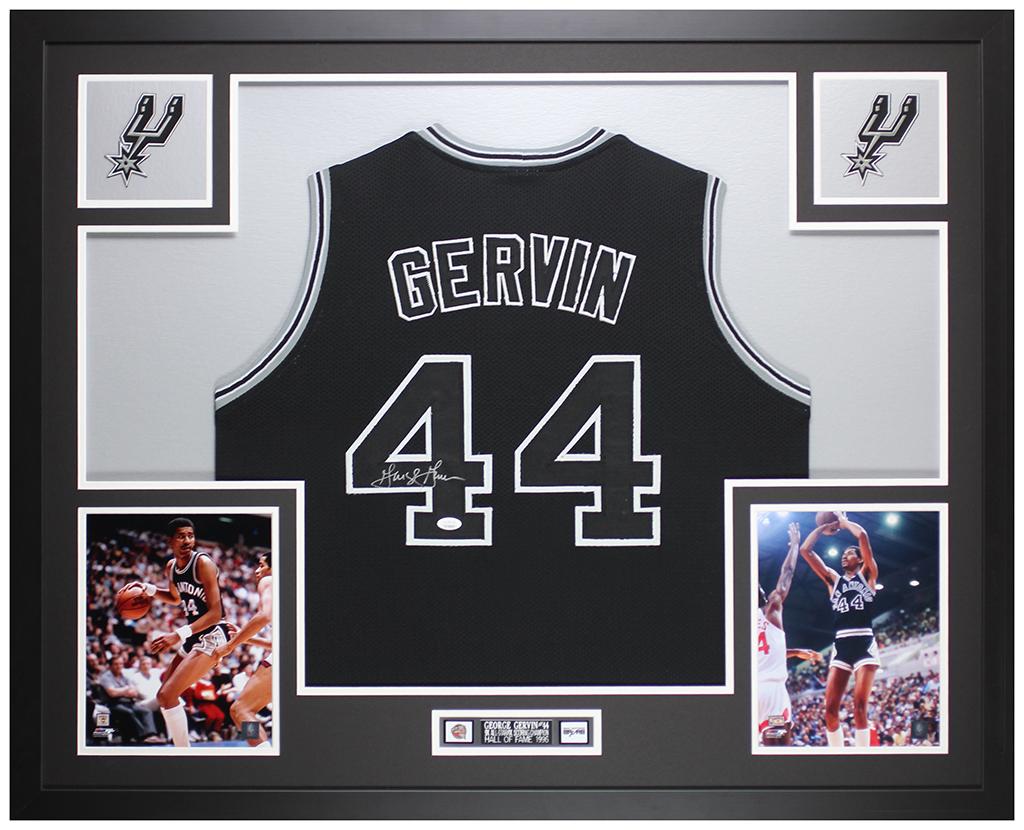 Custom frame measures 35" x 43" in size and features a jersey that has been hand-signed by George Gervin (HOF).
