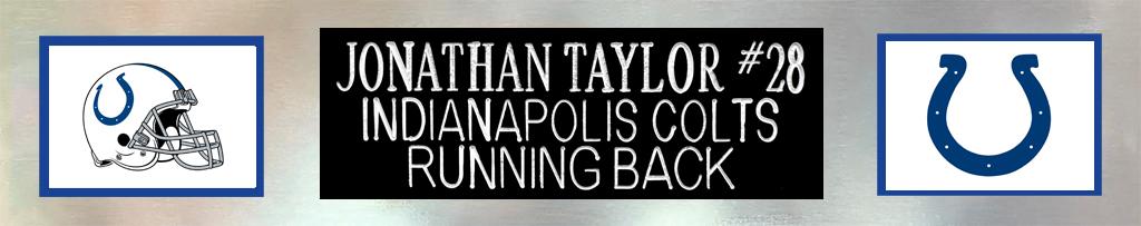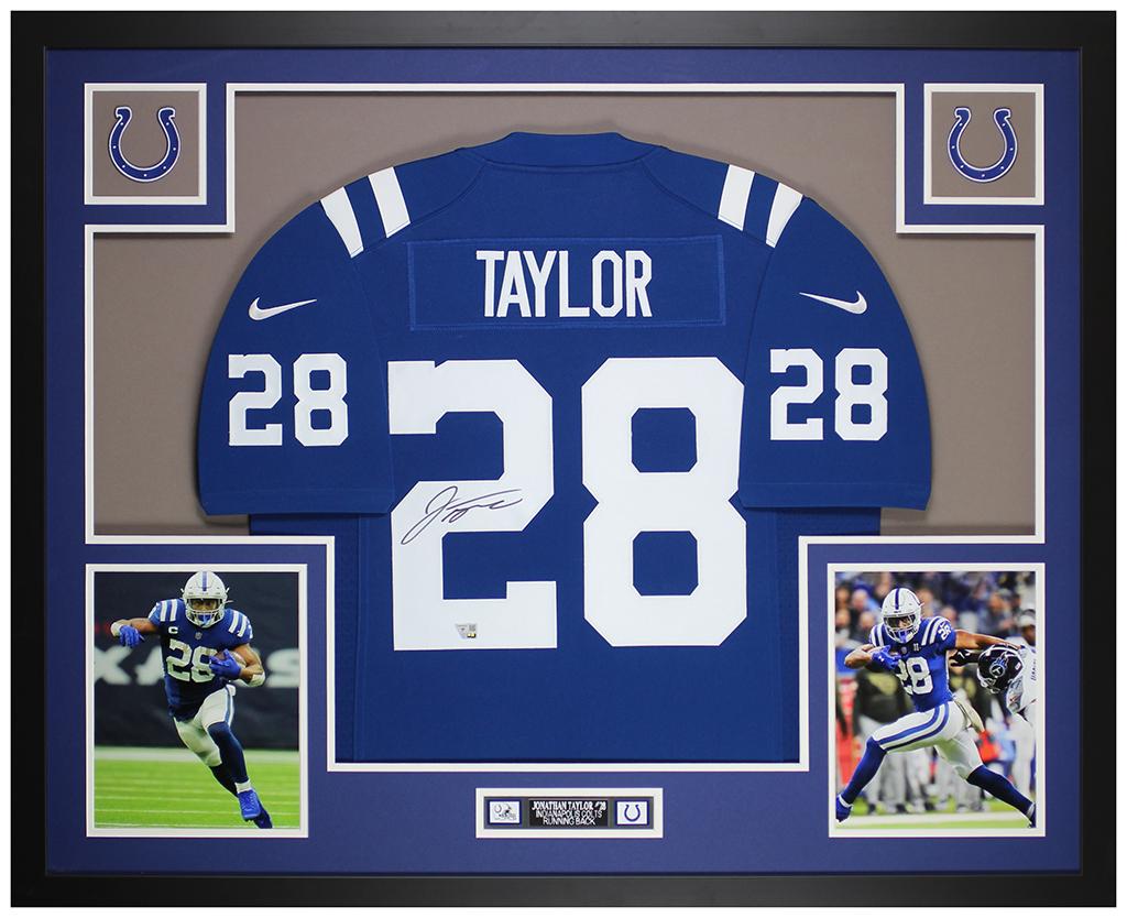 Custom frame measures approximately 35" x 43" in size and features a jersey hand-signed by Jonathan Taylor (Indianapolis Colts).