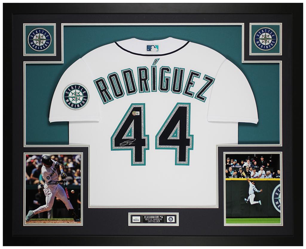 Custom frame measures approximately 35" x 43" in size and features a jersey hand-signed by Julio Rodriguez (Seattle Mariners).