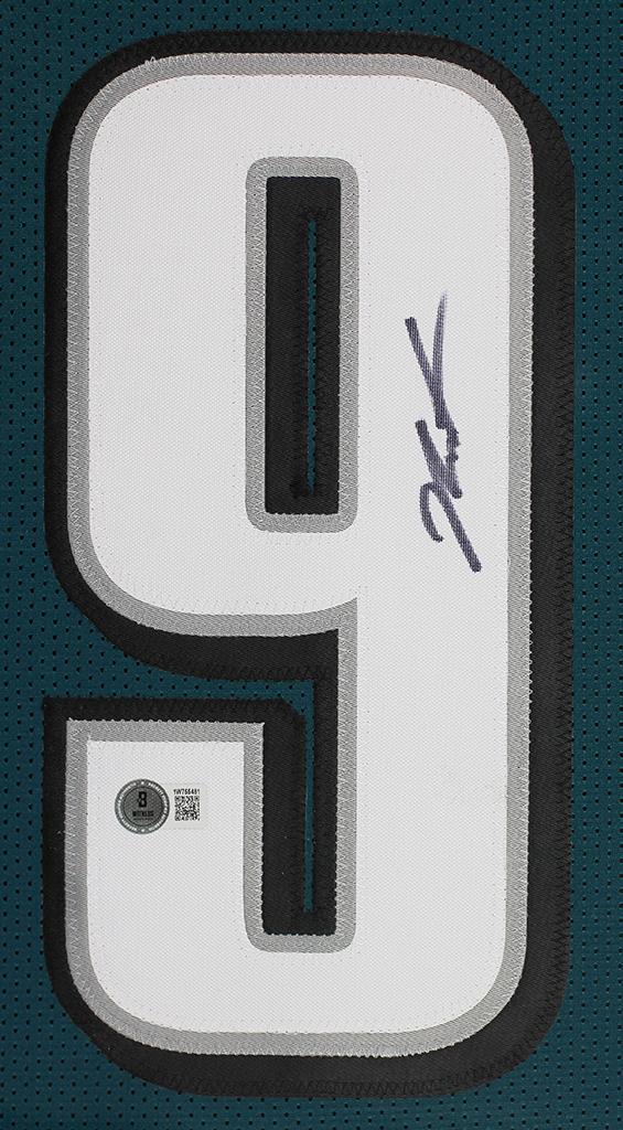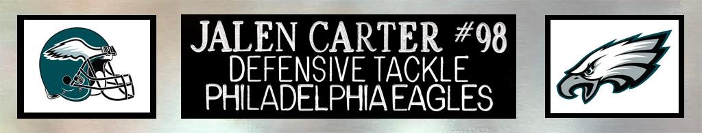 Custom frame measures 35" x 43" in size and features a jersey that has been hand-signed by Jalen Carter.