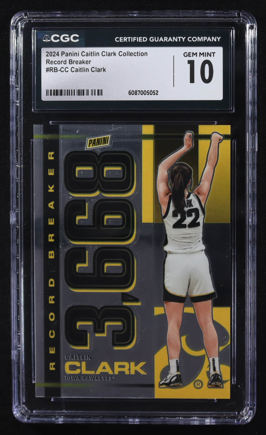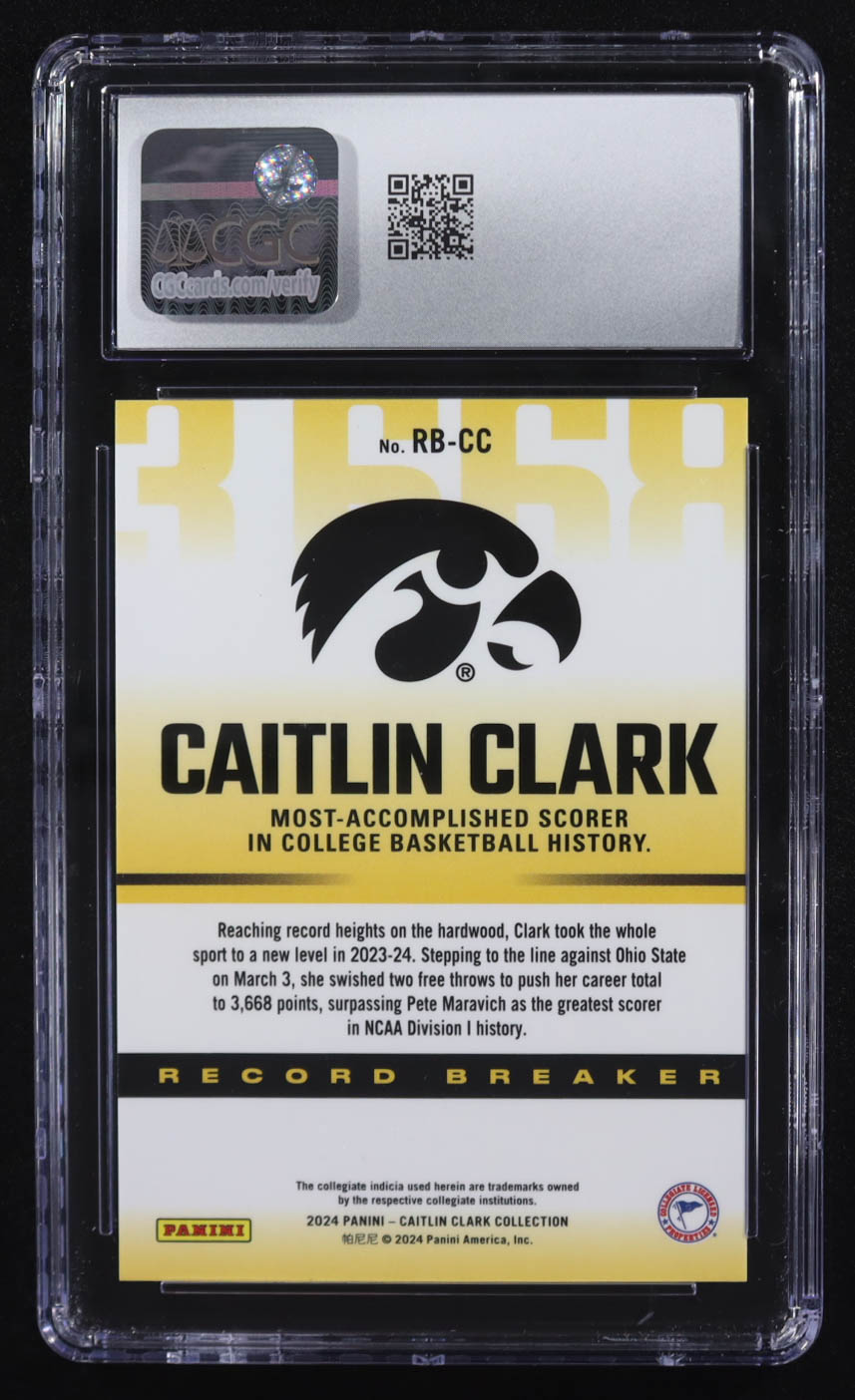 Caitlin Clark 2024 Panini Caitlin Clark Collection Record Breaker #RB-CC RC (CGC 10)