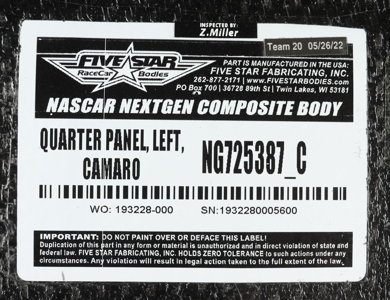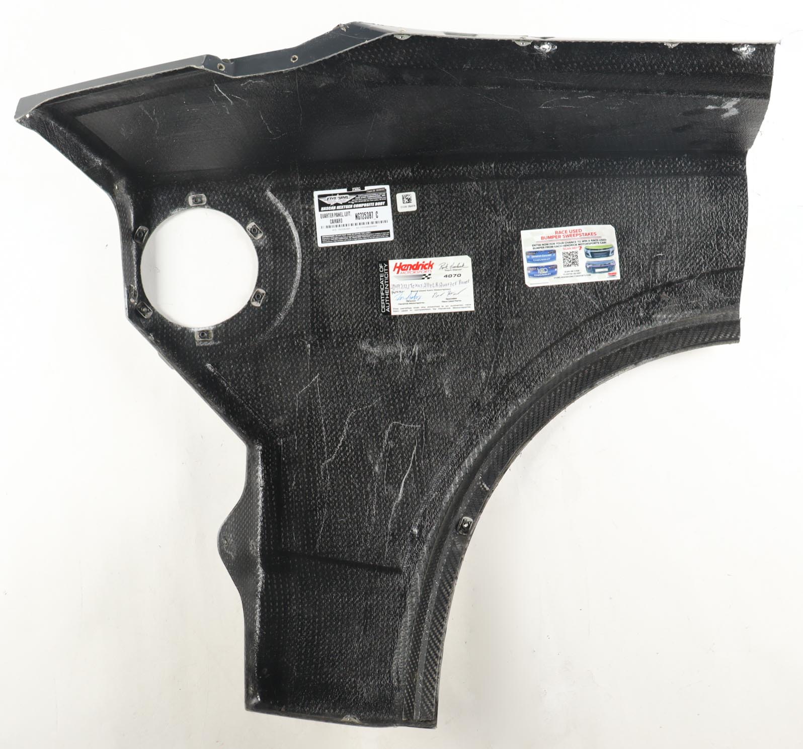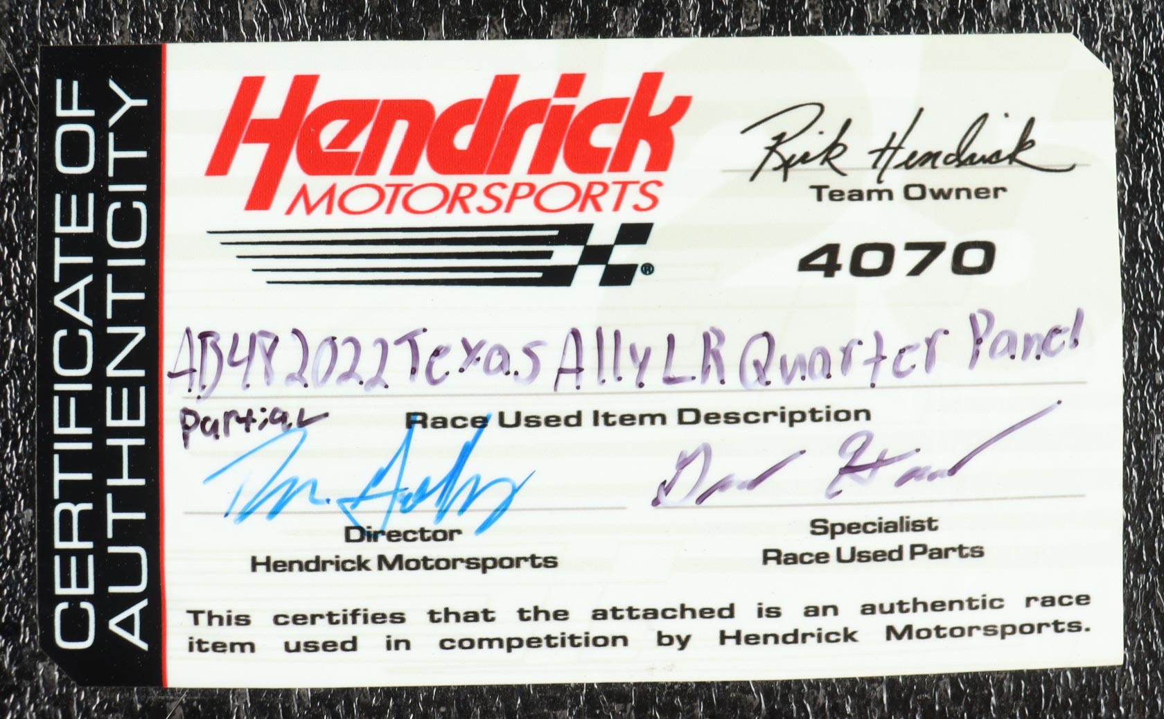 Race-Used Left Partial Quarter Panel Car Piece from Alex Bowman's #48 Ally during the 2022 AutoTrader EchoPark Automotive 500. Authenticated by the Director and Race Used Parts Specialist at Hendrick Motorsports.