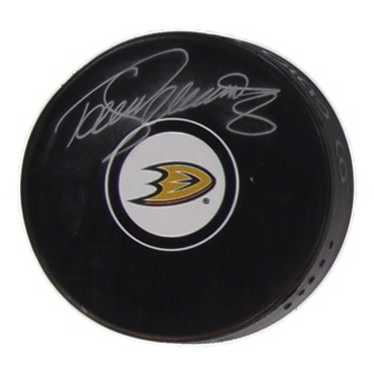 Anaheim Ducks Logo Hockey Puck. Hand-signed by Teemu Selanne (HOF). Please note, the signature has been smudged.