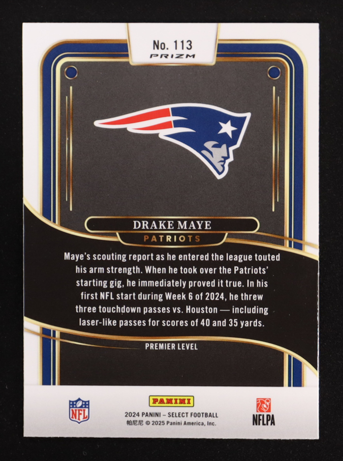 Drake Maye 2024 Select Prizm Black and Gold Shock #113 RC