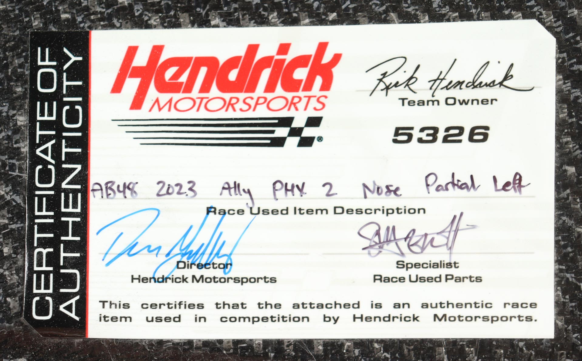 Authentication: Hendrick Motorsports COA