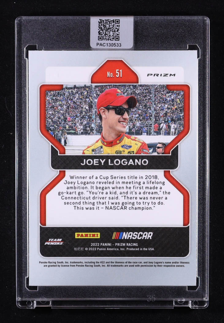 Joey Logano Signed 2022 Panini Prizm Prizms Hyper Red White and Blue #51