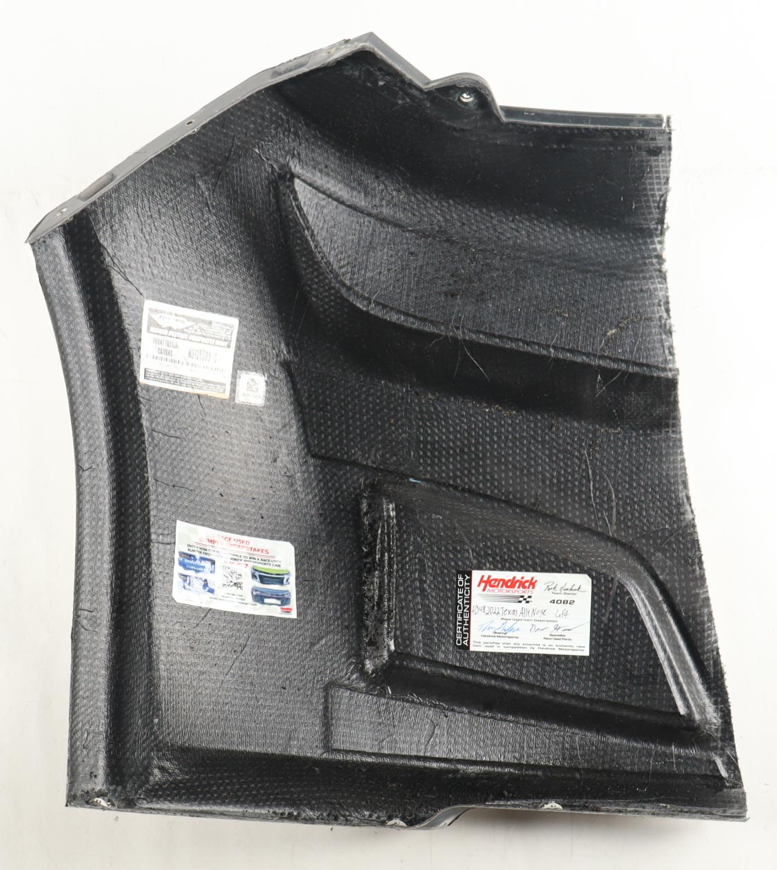 Race-Used Left Partial Nose Car Piece from Alex Bowman's #48 Ally during the 2022 All-Star Race. Authenticated by the Director and Race Used Parts Specialist at Hendrick Motorsports.