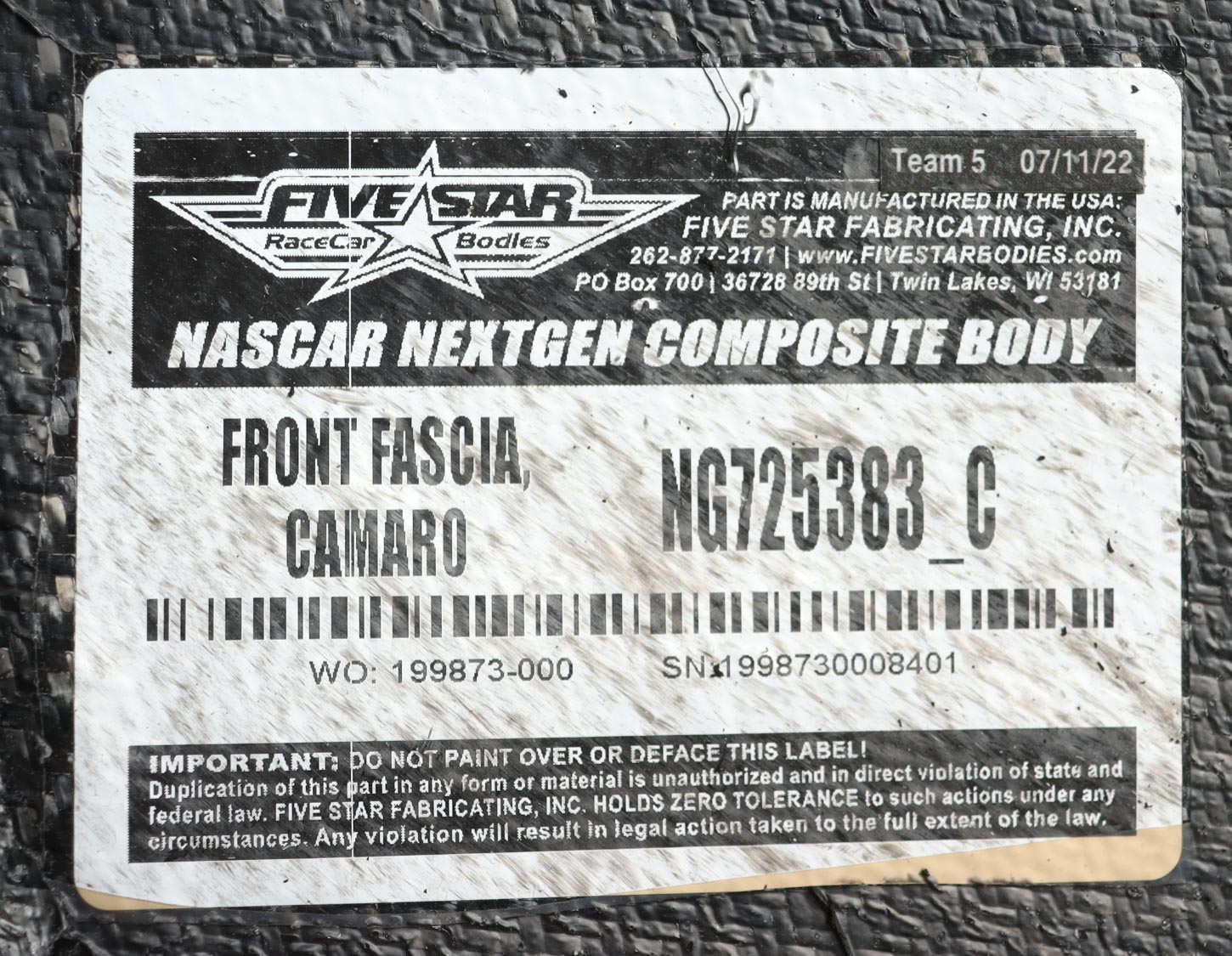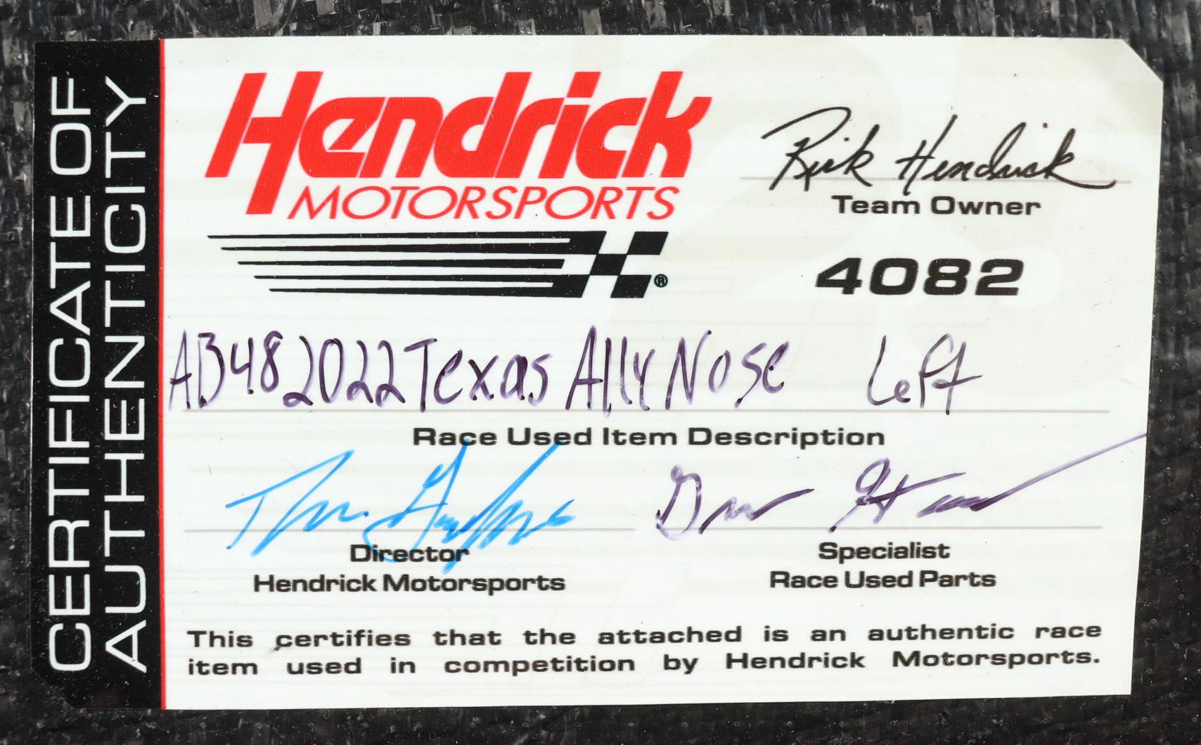 Authentication: Hendrick Motorsports COA