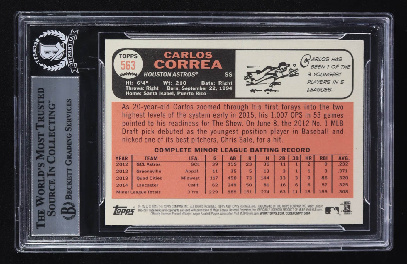 Carlos Correra Signed 2015 Topps Heritage #563 RC (BGS)