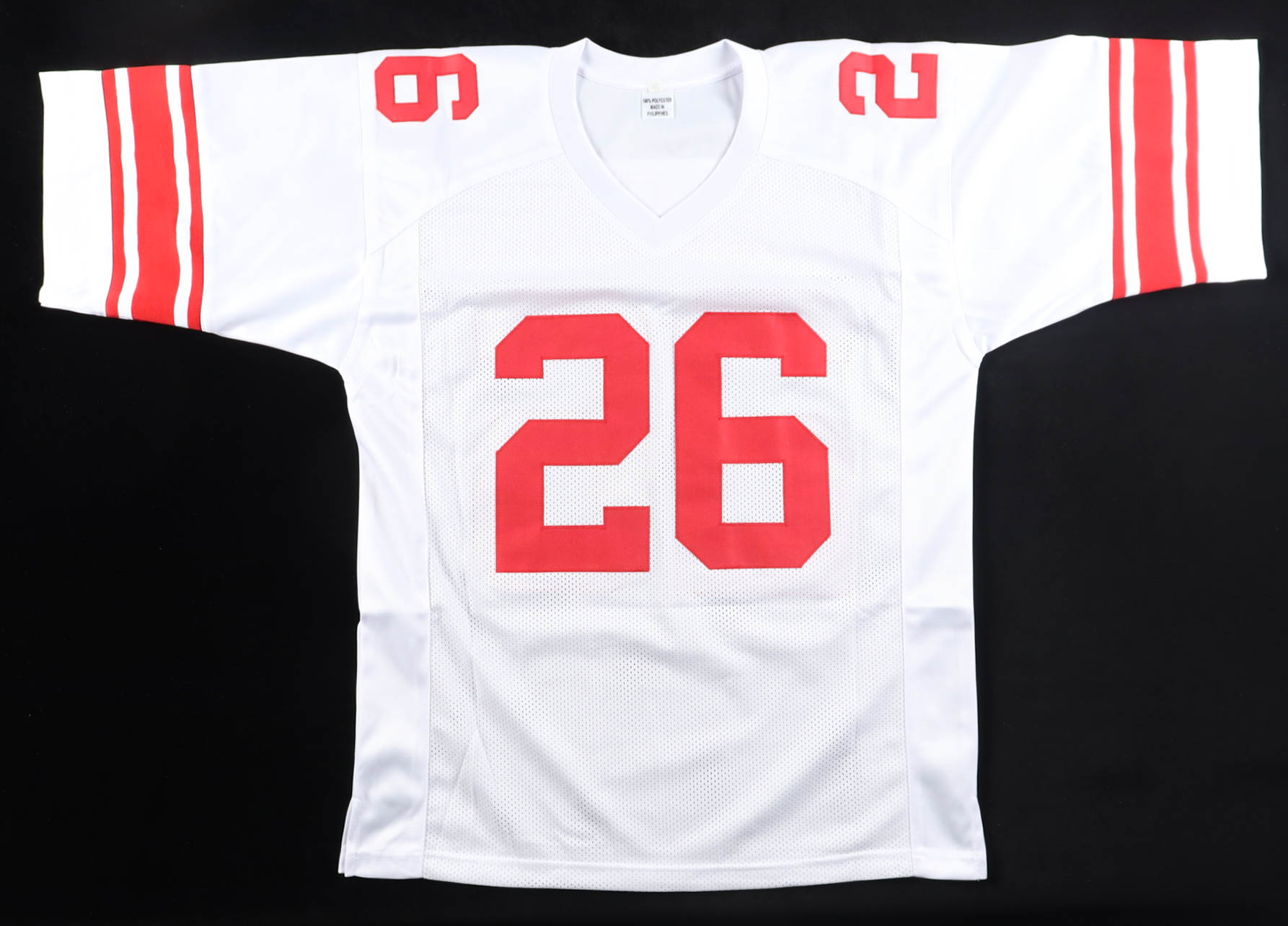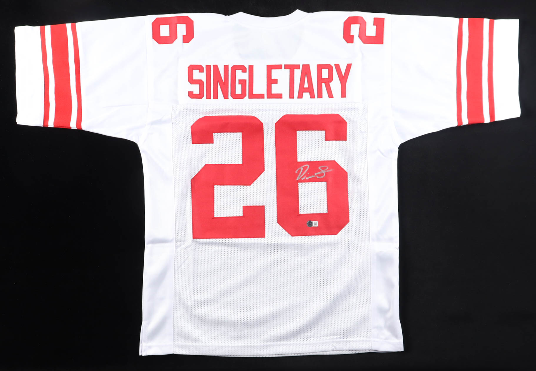 Custom jersey with everything sewn on, size XL. Hand-signed by Devin Singletary.