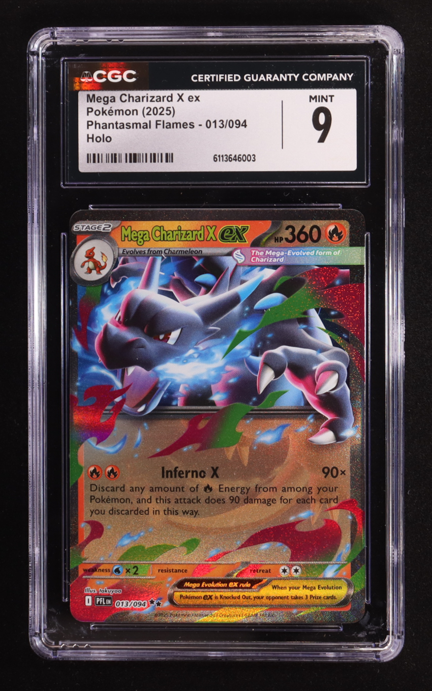 Mega Charizard X ex 2025 Pokemon TCG Mega Evolution Phantasmal Flames #013 Holo (CGC 9)