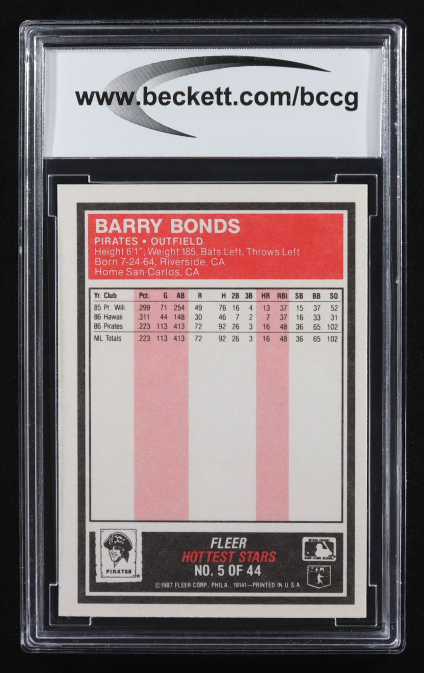 Barry Bonds 1987 Fleer Hottest Stars #5 RC (BCCG 10)