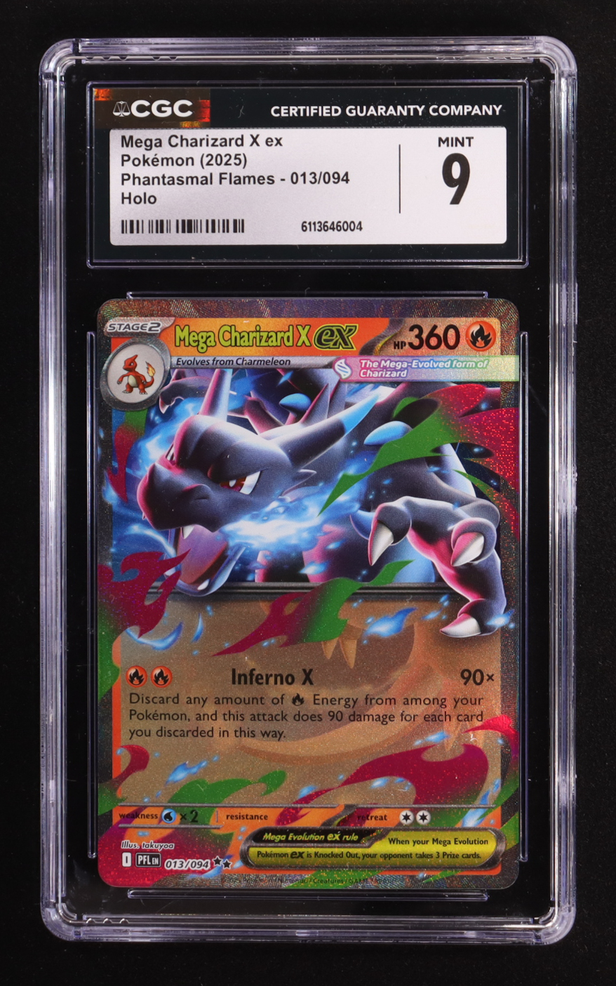 Mega Charizard X ex 2025 Pokemon TCG Mega Evolution Phantasmal Flames #013 Holo (CGC 9)