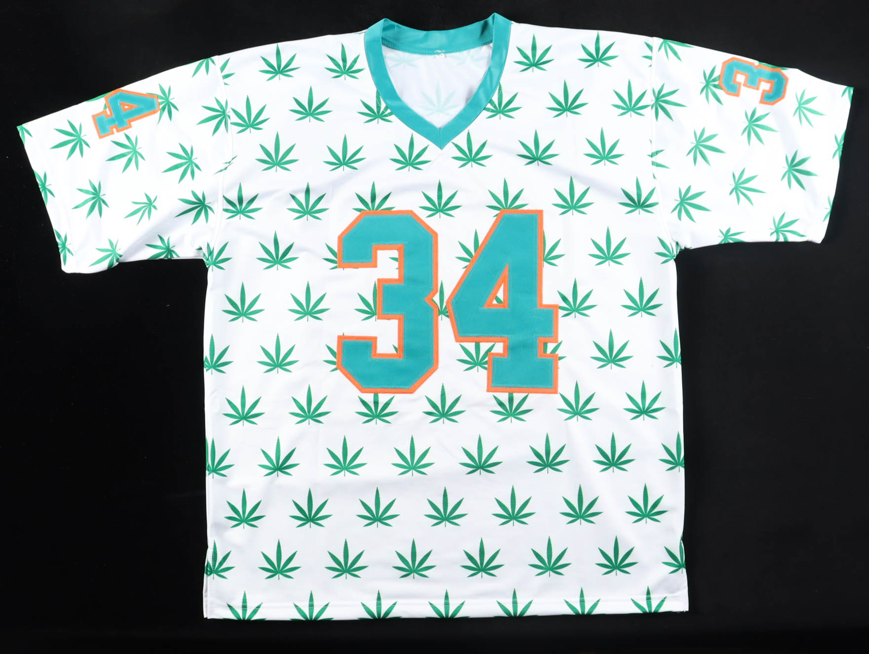 Custom jersey with everything sewn on, size XL. Hand-signed by Ricky Williams. Please note, there is a staining below the reverse number.