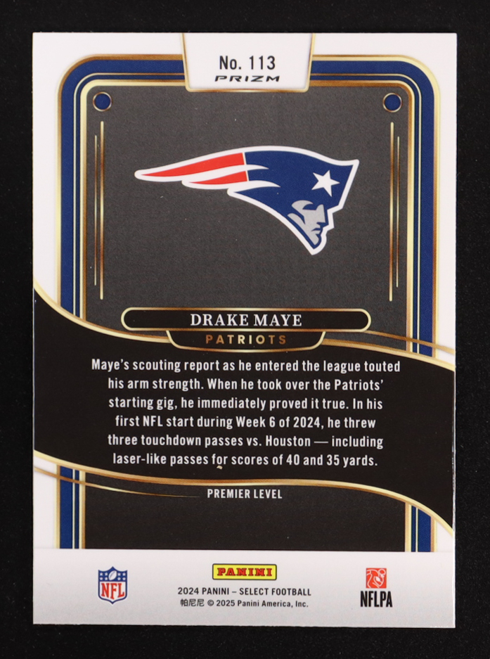 Drake Maye 2024 Select Prizm Black and Green Shock #113 RC