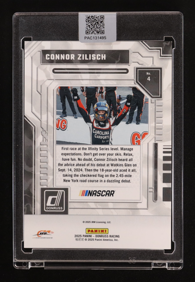 Connor Zilisch Signed 2025 Donruss Season Highlights Red Xplosion #4 #/99