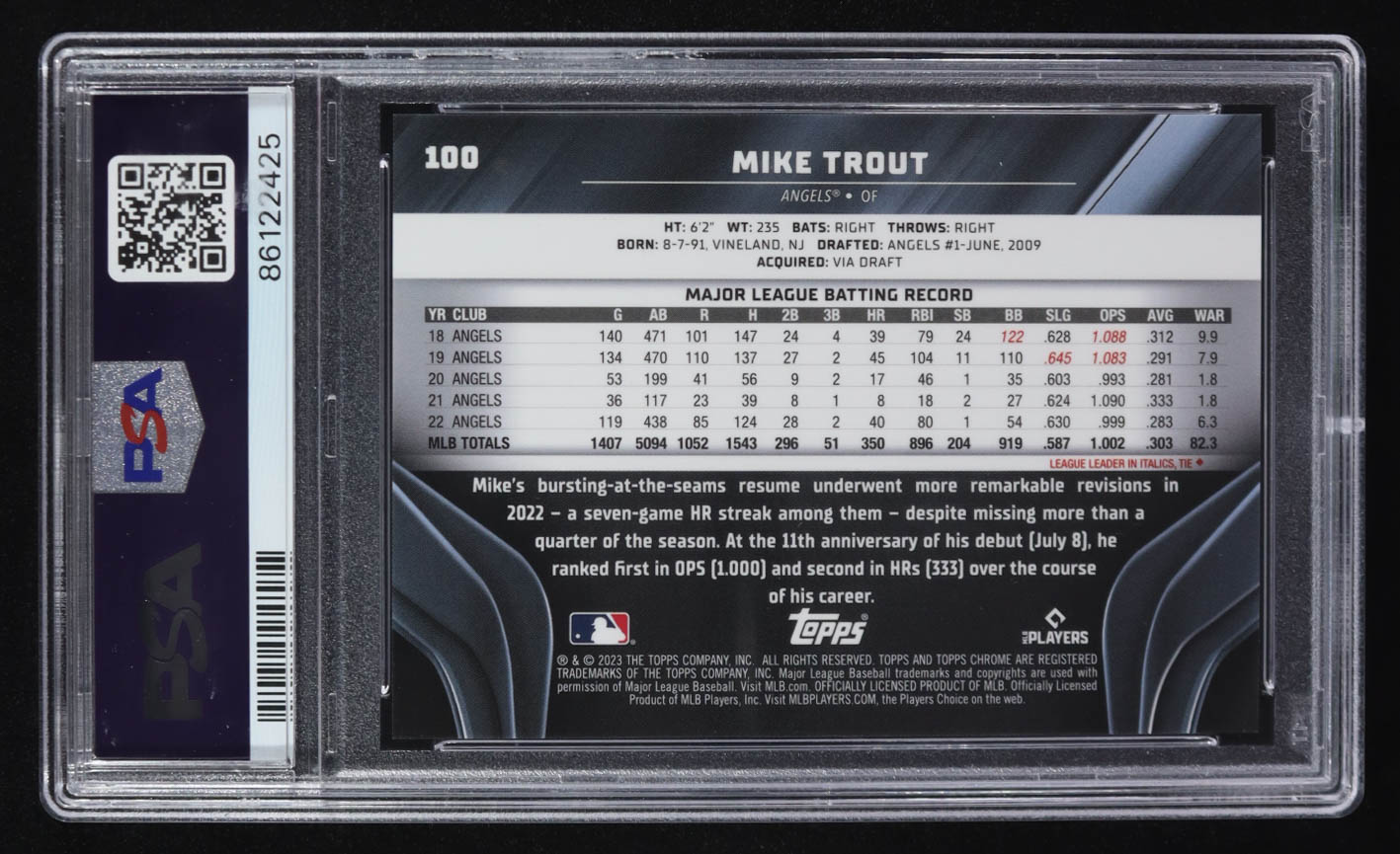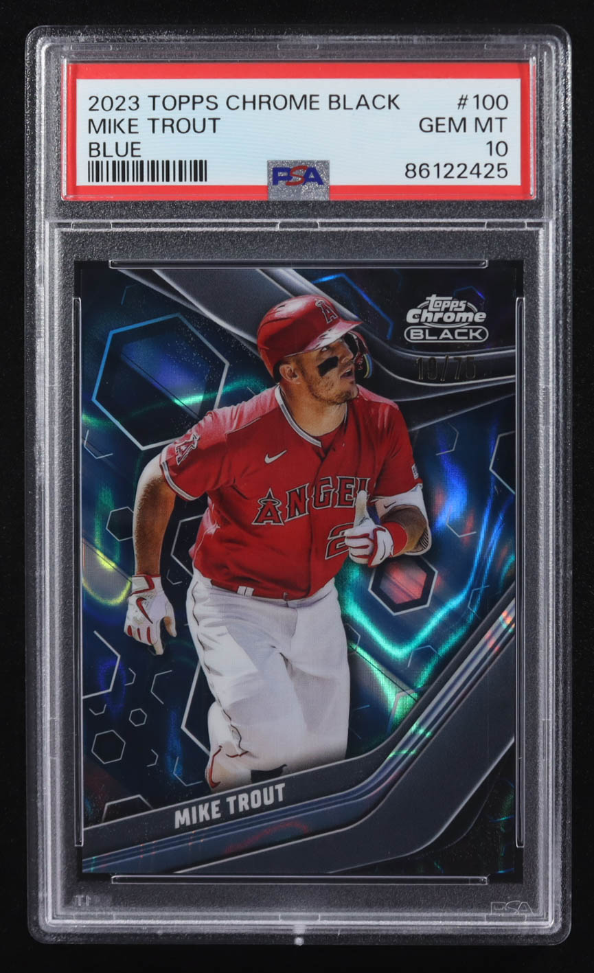 Mike Trout 2023 Topps Chrome Black Blue Refractors #100 #19/75 (PSA 10)