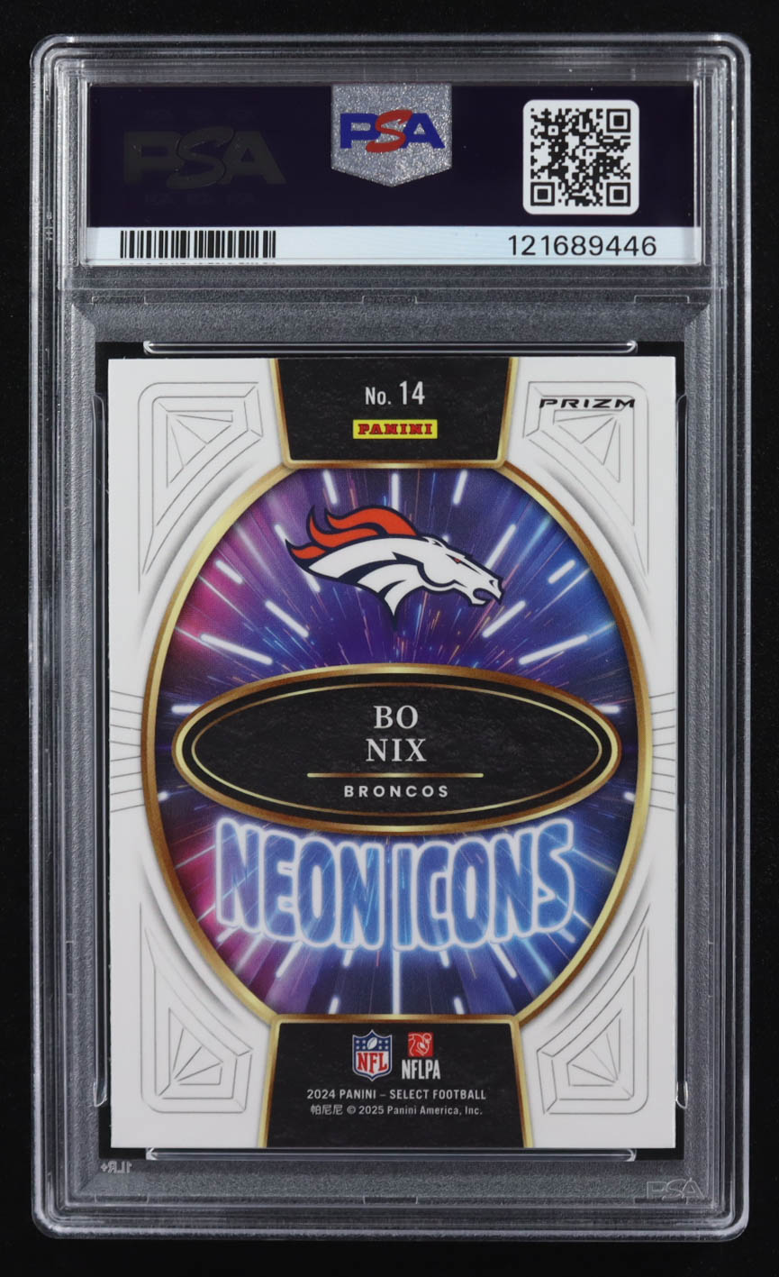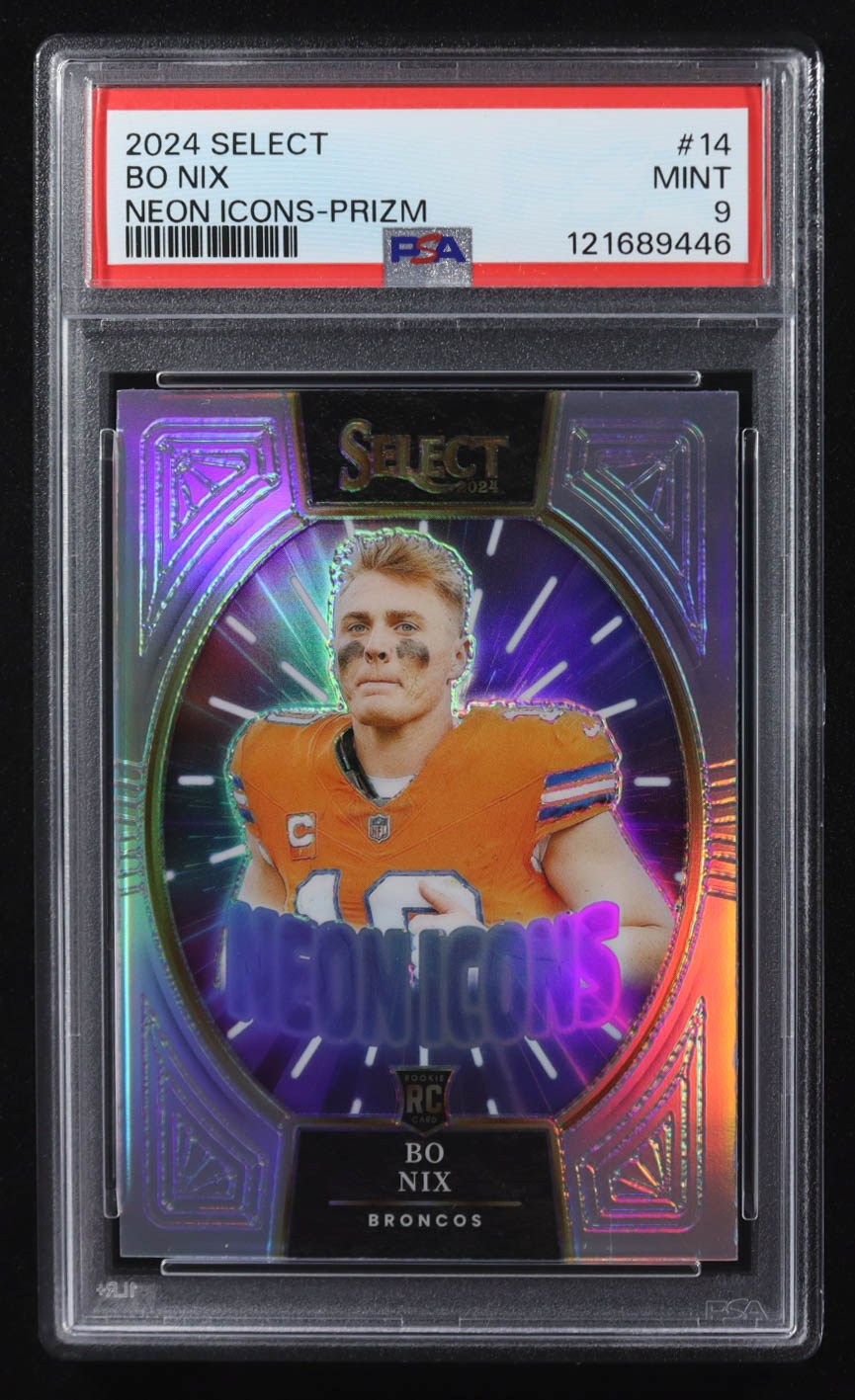 Bo Nix 2024 Select Neon Icons Prizm #14 RC (PSA 9)
