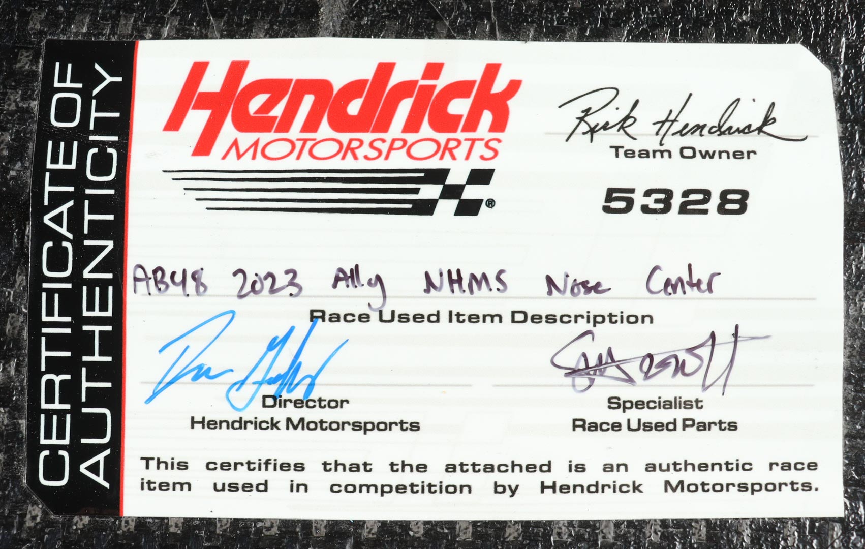 Authentication: Hendrick Motorsports COA