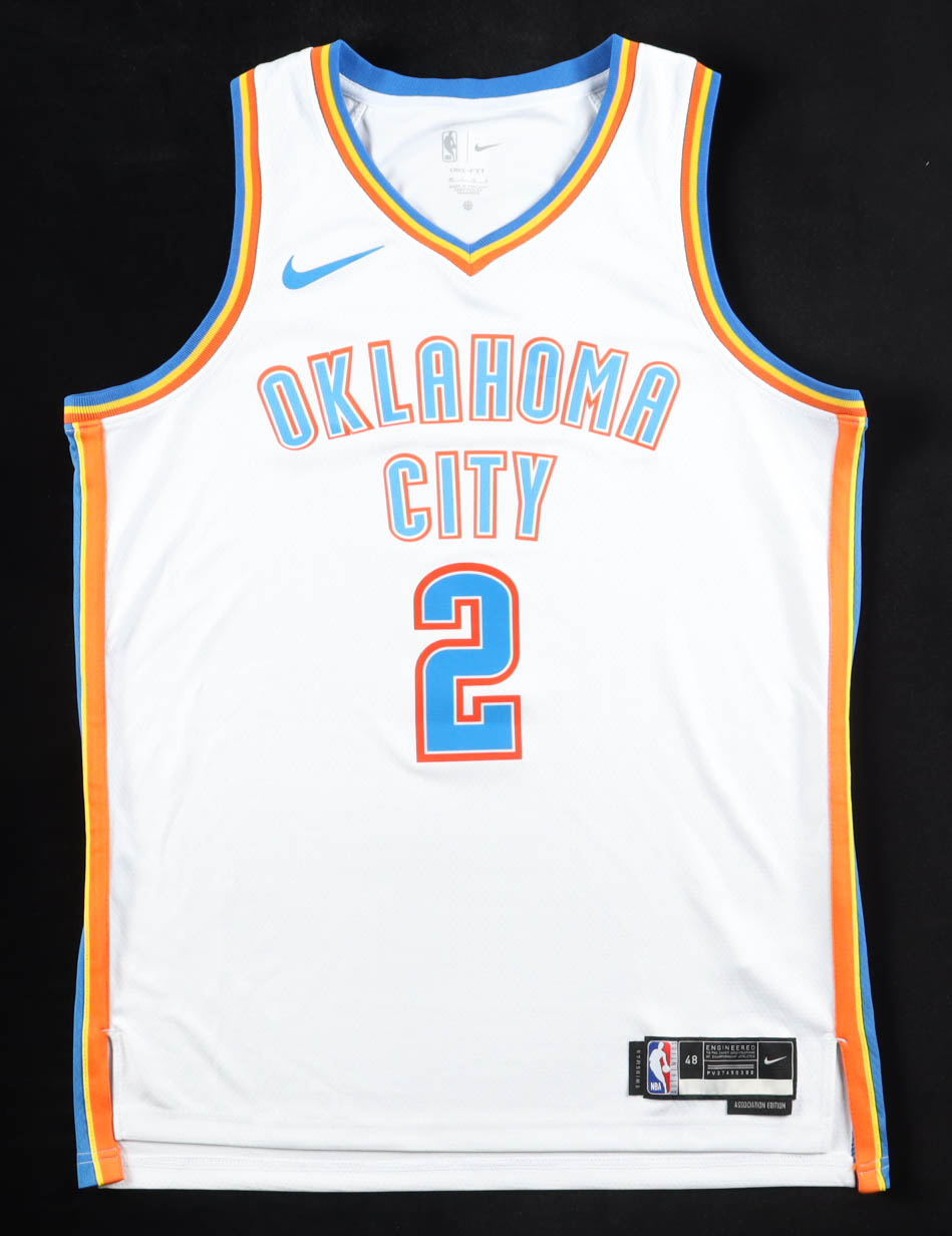 Nike authentic jersey with everything pressed on, size 48. Hand-signed by Shai Gilgeous-Alexander (Oklahoma City Thunder).