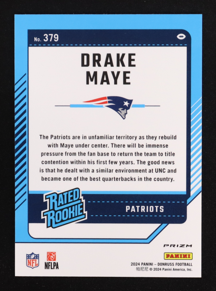 Drake Maye 2024 Donruss Optic Rated Rookies Preview Pink #379 RC