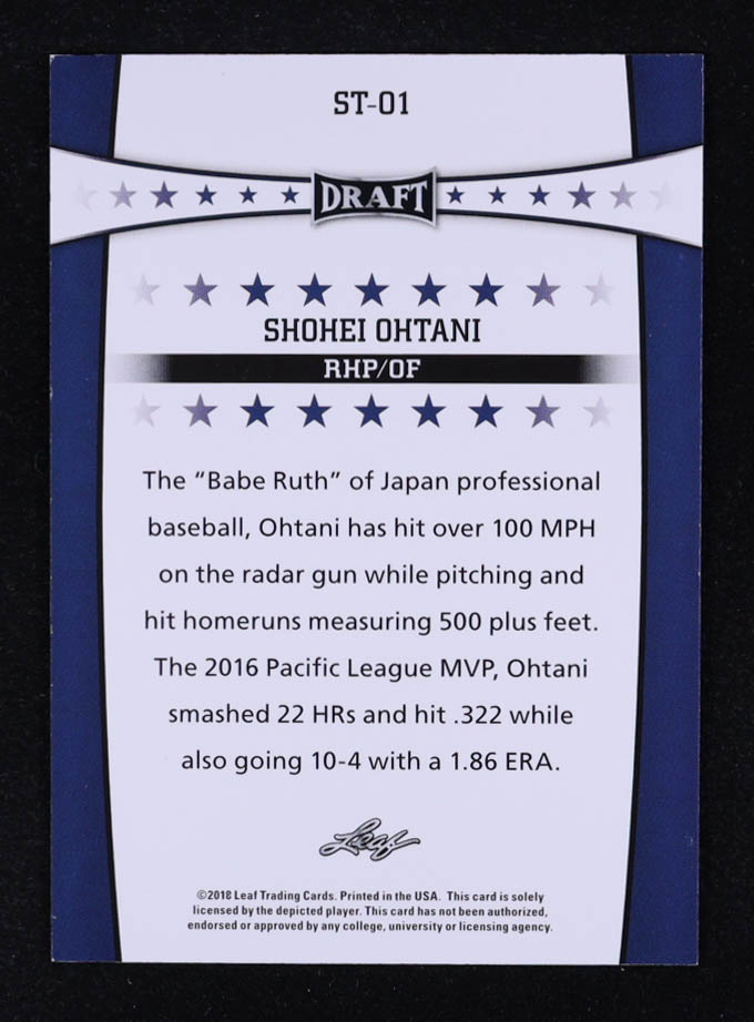 Shohei Ohtani 2018 Leaf Ohtani Draft Stars #ST01 RC