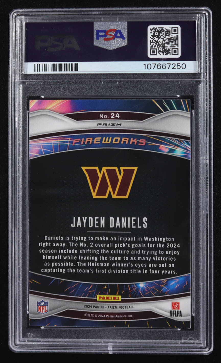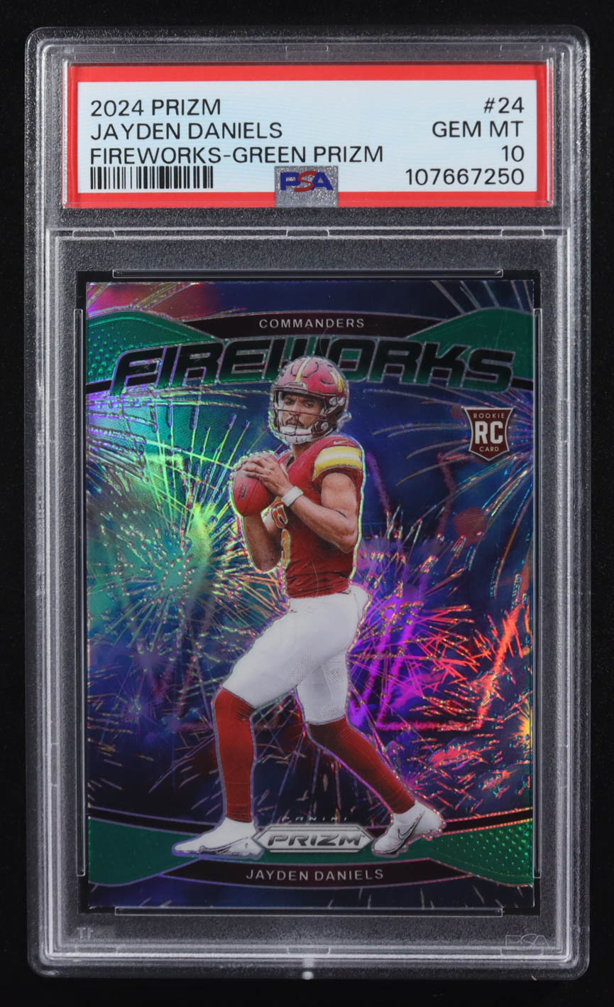 Jayden Daniels 2024 Prizm Fireworks Prizms Green #24 RC (PSA 10)