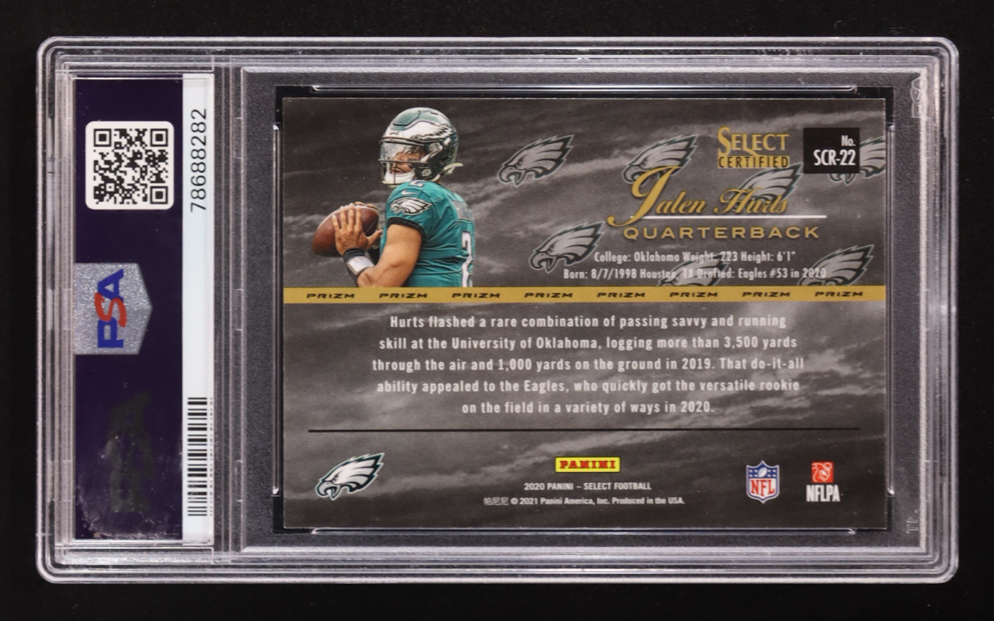 Jalen Hurts 2020 Panini Select Certified Rookie Prizm #SCR-22 RC (PSA 9)