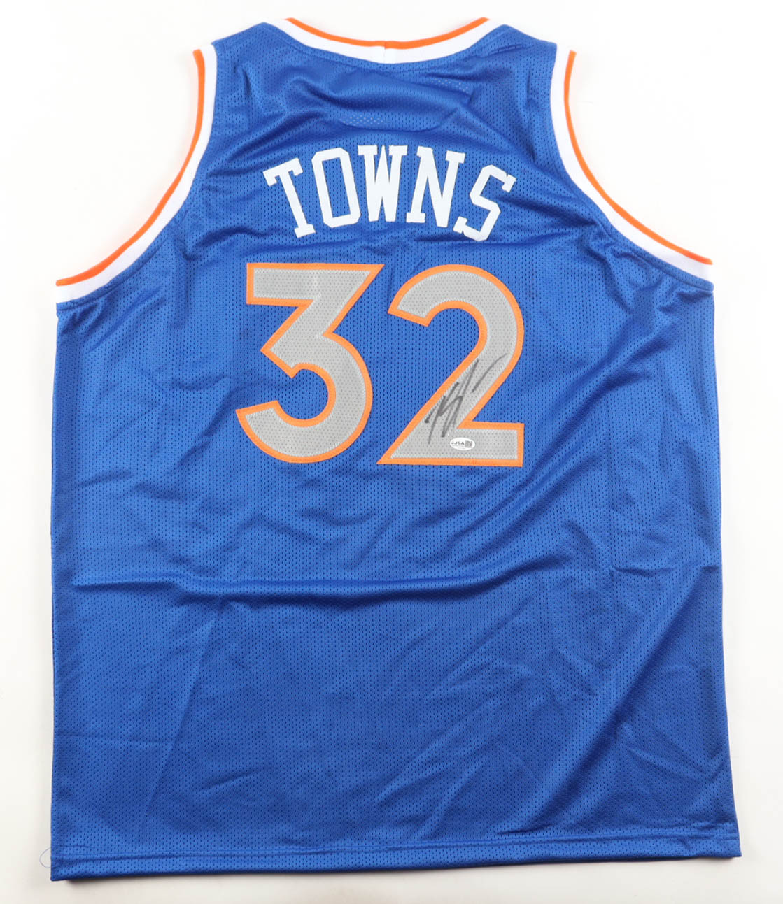 Custom jersey with everything sewn on, size XL. Hand-signed by Karl-Anthony Towns (New York Knicks).