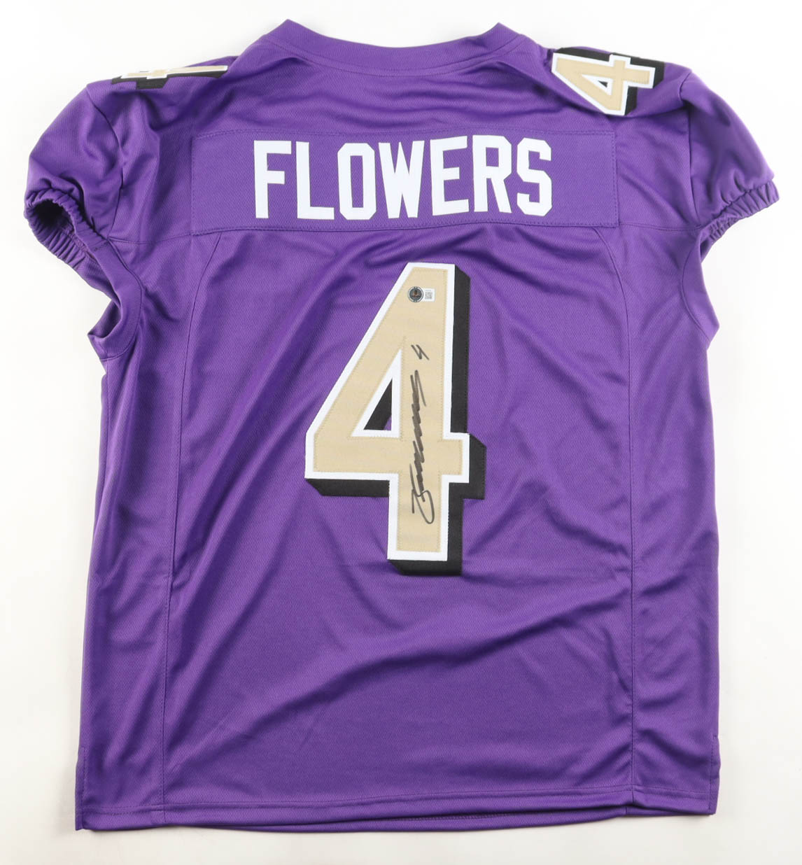 Custom jersey with everything sewn on, size XL. Hand-signed by Zay Flowers.