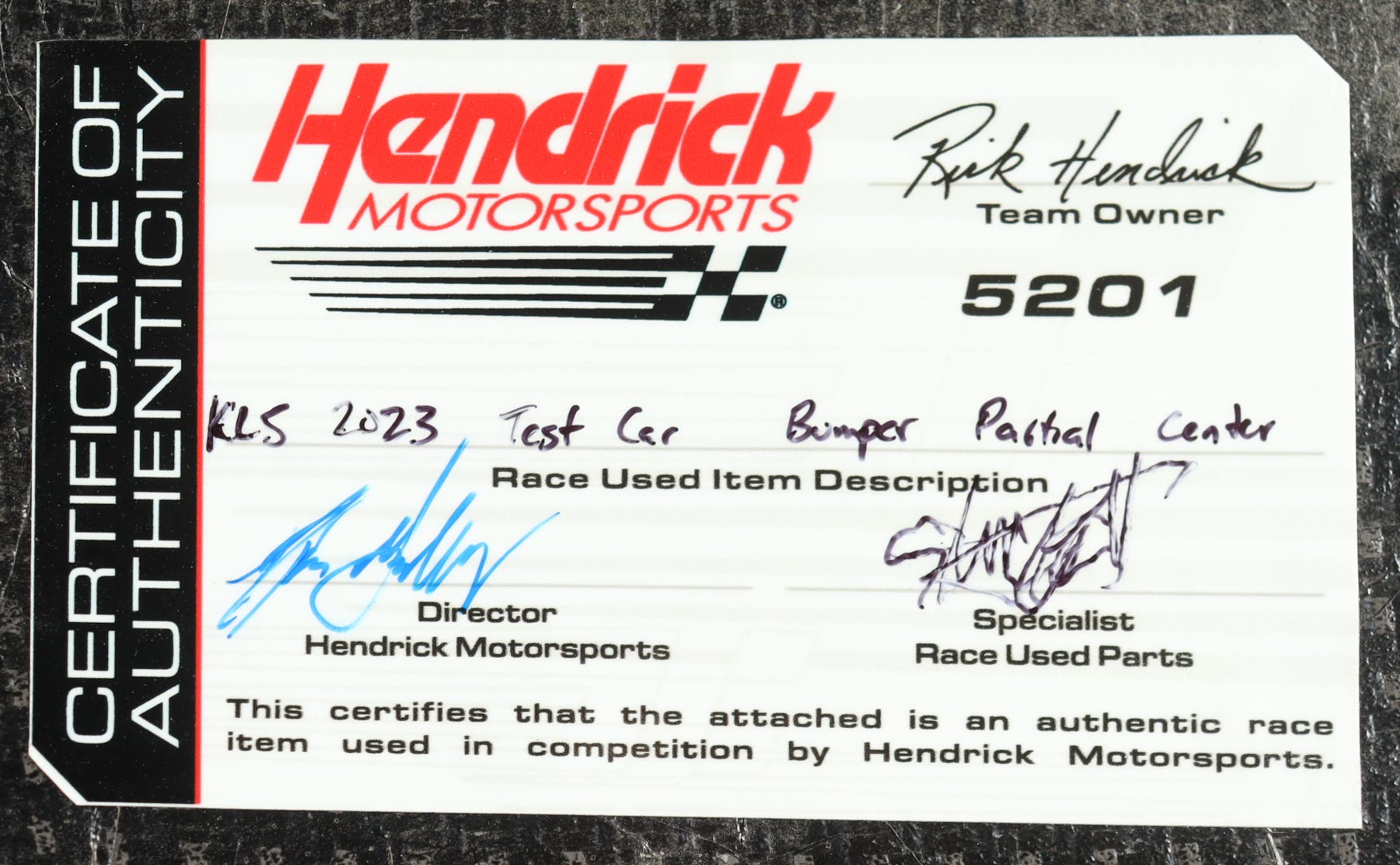 Race-Used Partial Center Bumper Car Piece from Kyle Larson's #5 Test Car during the 2023 NASCAR Cup Series. Authenticated by the Director and Race Used Parts Specialist at Hendrick Motorsports.