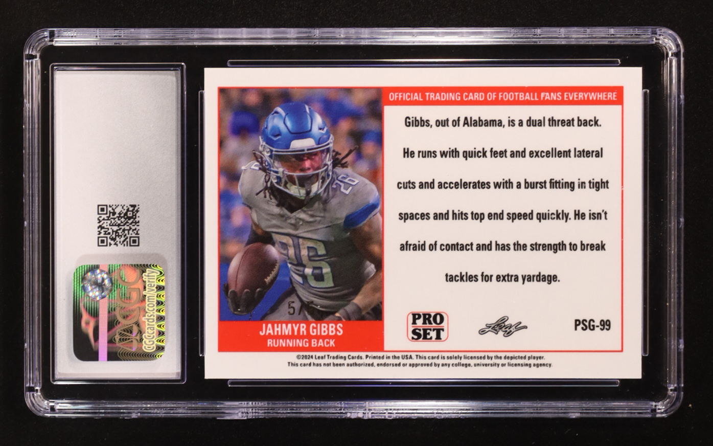 Jahmyr Gibbs 2023 Leaf Web Exclusives Pro Set Gold Tie-Dye XRC #PSG-99 RC #5/5 (CGC 9)