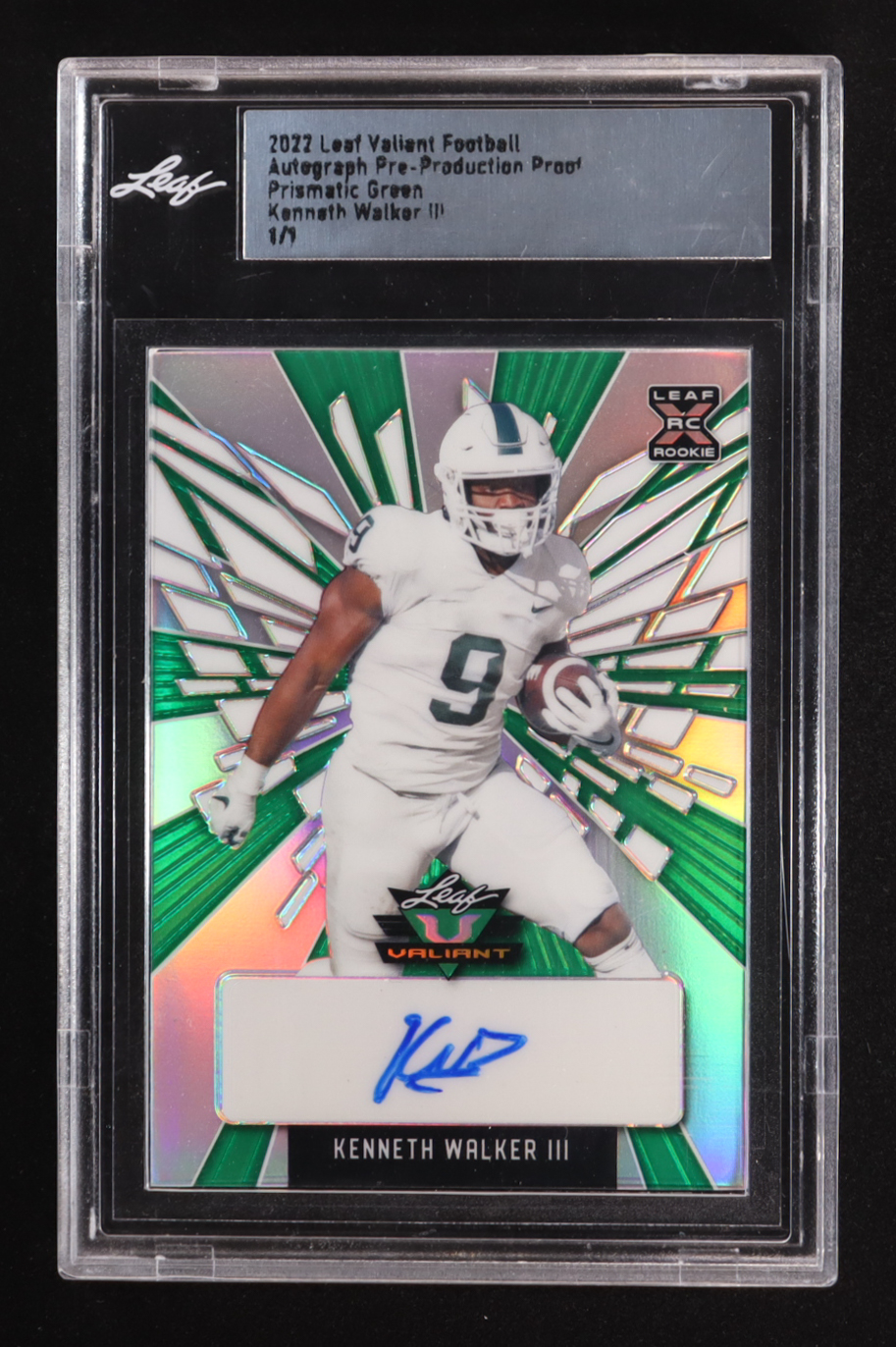 Kenneth Walker III 2022 Leaf Valiant Prismatic Green Pre-Production Proof XRC Auto RC #1/1