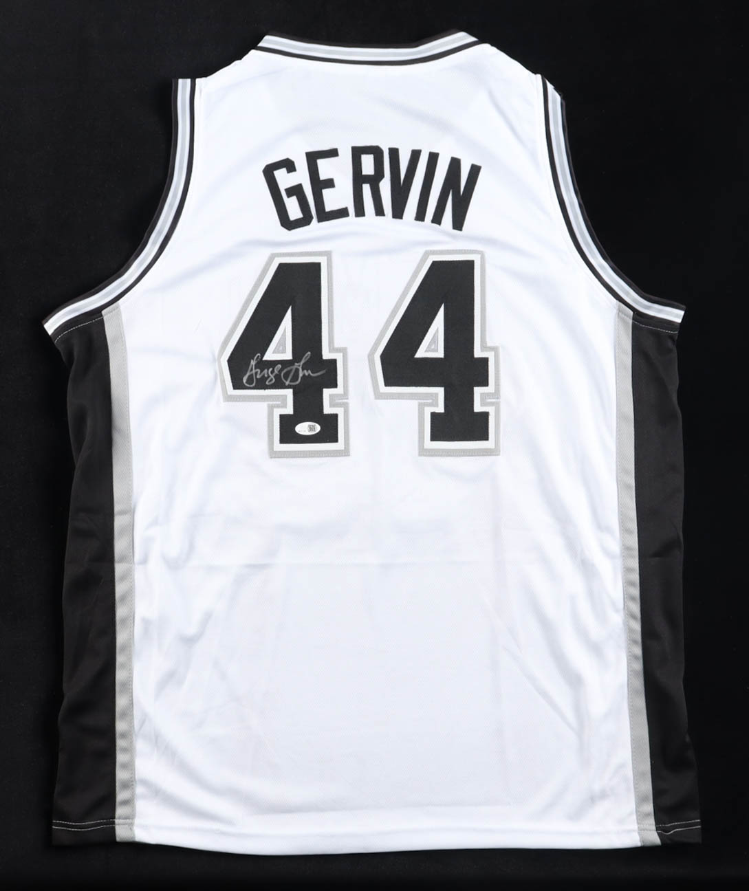 Custom jersey with everything sewn on, size XL. Hand-signed by George Gervin (San Antonio Spurs, HOF).