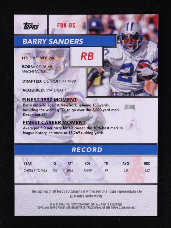 Barry Sanders 2024 Finest Flashback Autographs Oil Spill Geometric Refractors #FBABS #02/10