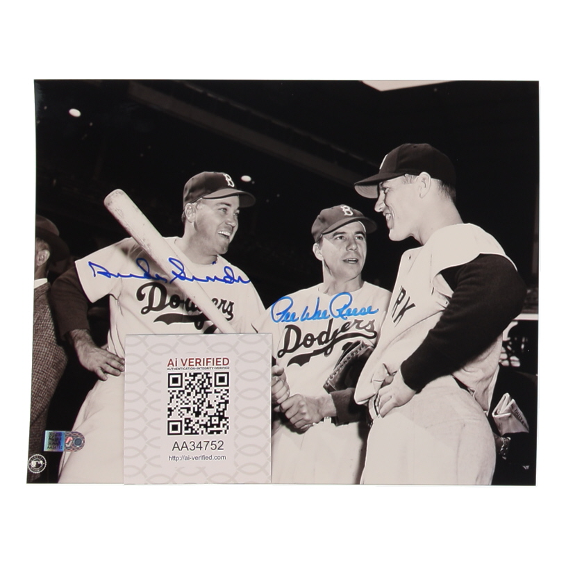 Photo measures 8" x 10" in size and has been hand-signed by Duke Snider (D. 2011, Brooklyn Dodgers, HOF) and Pee Wee Reese (D. 1999, Brooklyn Dodgers, HOF).