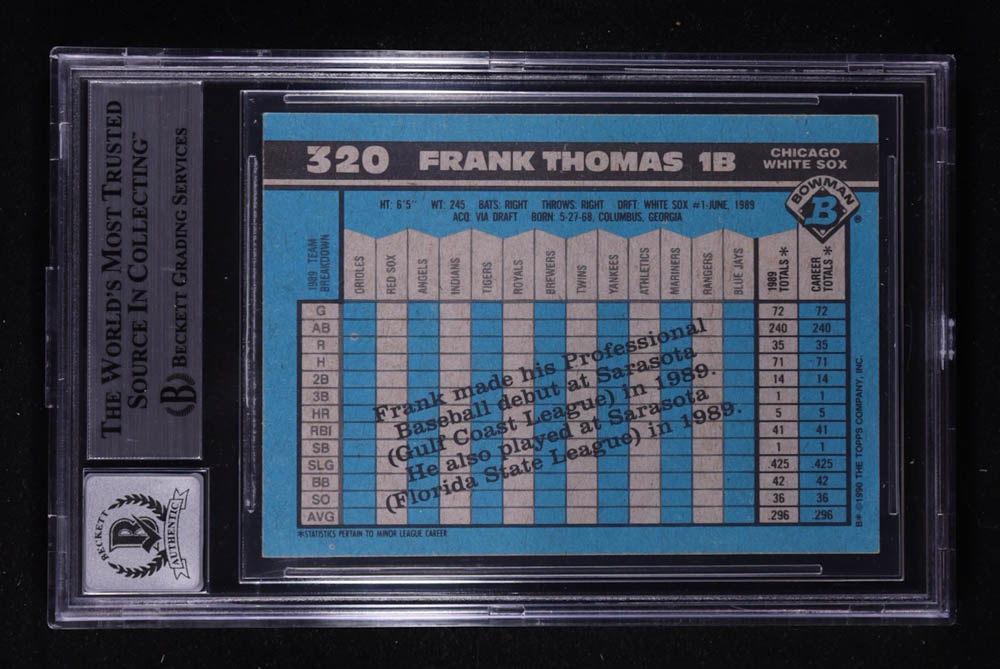 Frank Thomas Signed 1990 Bowman #320 RC (BGS | Autograph Graded BGS 10)