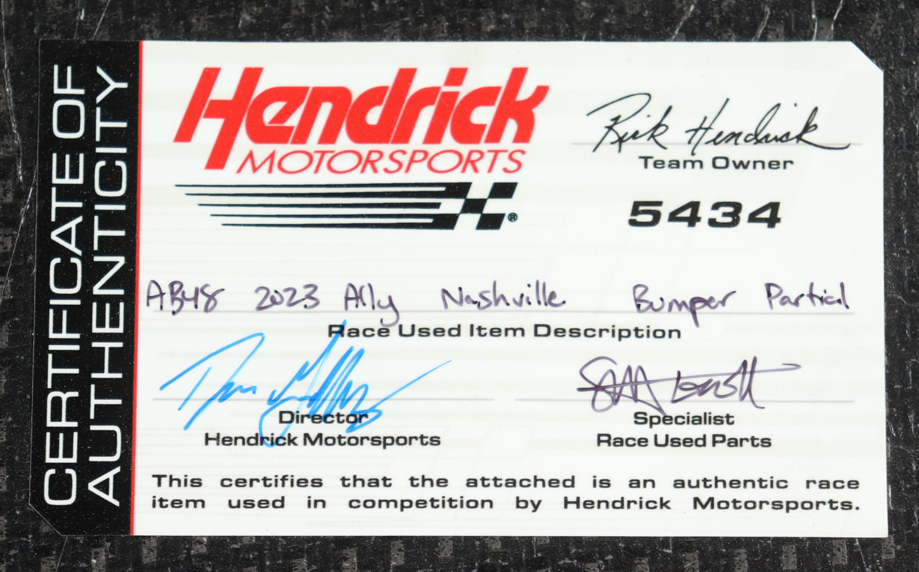 Authentication: Hendrick Motorsports COA