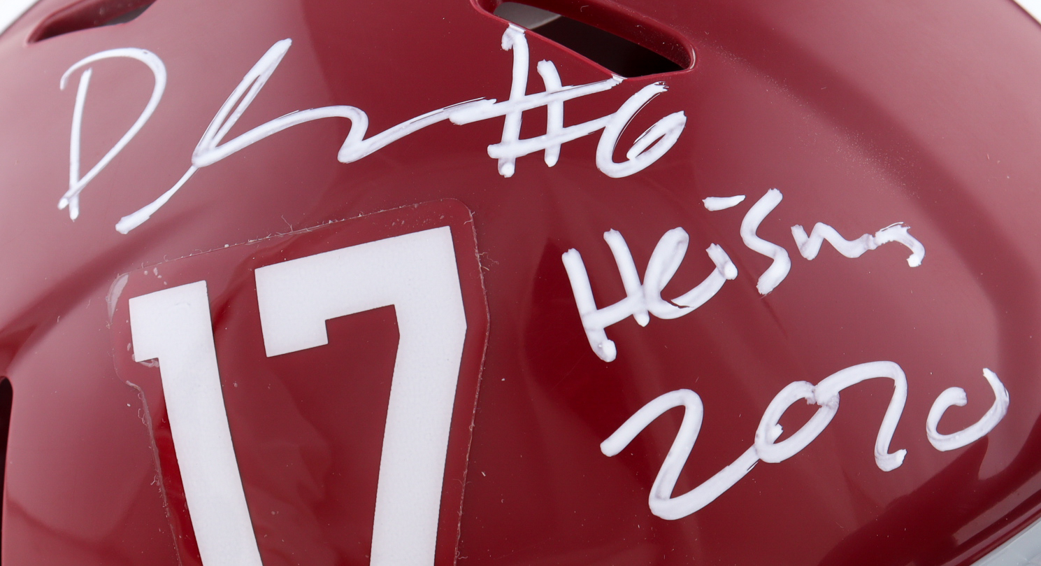 Riddell Alabama Crimson Tide speed mini hemet. Hand-signed and inscribed by DeVonta Smith. See photos for more details.