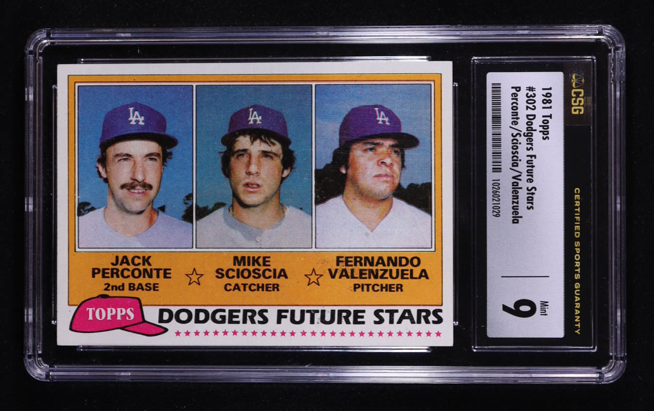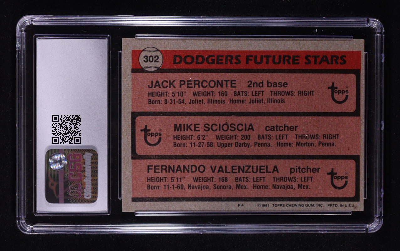 Jack Perconte / Mike Scioscia / Fernando Valenzuela 1981 Topps #302 RC (CSG 9)