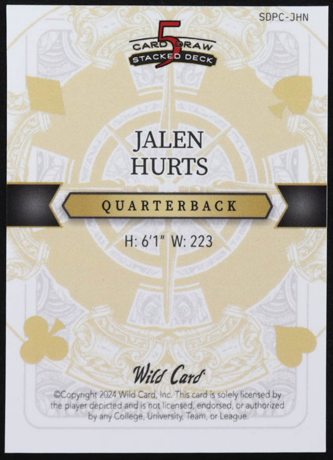 Jalen Hurts 2024 Wild Card 5 Card Draw Stacked Deck Queen Clubs Red Crystal #SDPCJHN #2/2